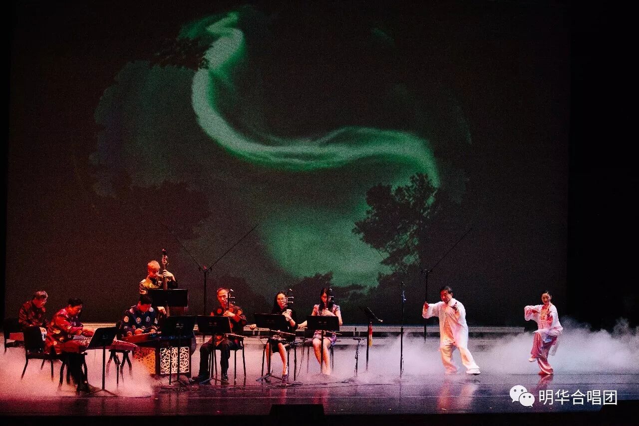 《华乐太极》(民乐队:黄宁生、周彩云、李家骧 、于野 、林建武、Spencer Becker 、刘广庆、鲜熙阳、方月东、邱天)融中国民乐和太极表演为一体,富有创意地演绎了中华文化的精粹。