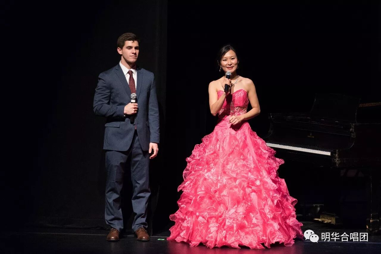 随后合唱团声乐指导李玉琪、团员陶业表演了著名西方流行歌曲《告别时刻》。他们精彩的演唱赢得了观众的热烈掌声。
