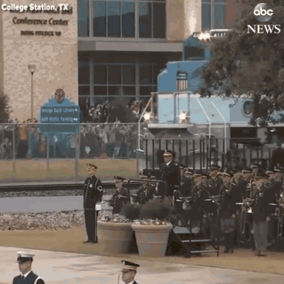 下午4点,老布什的灵柩抵达College Station,再由专车运往Texas A&M。