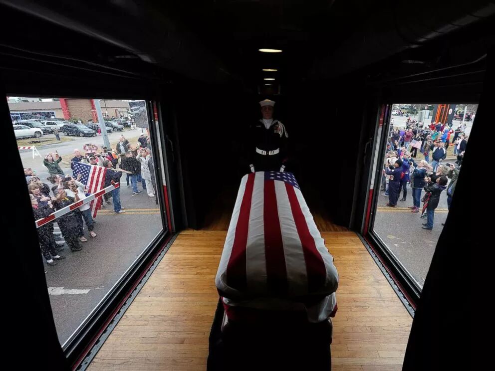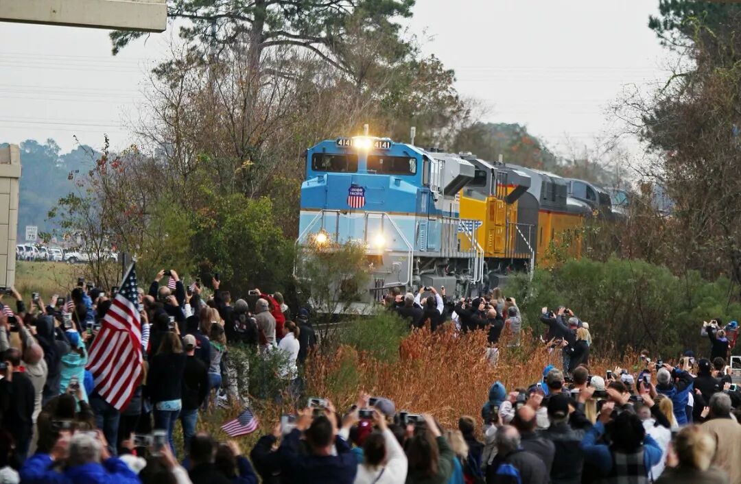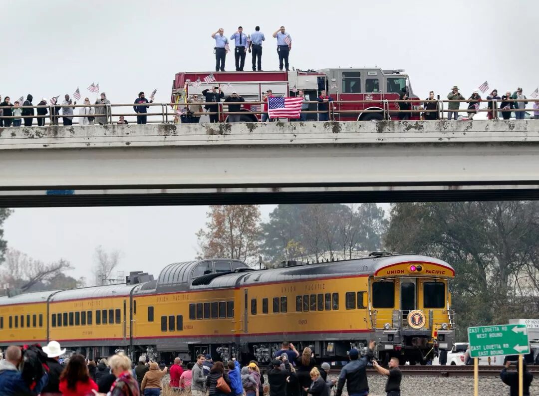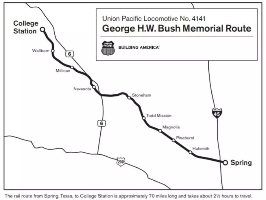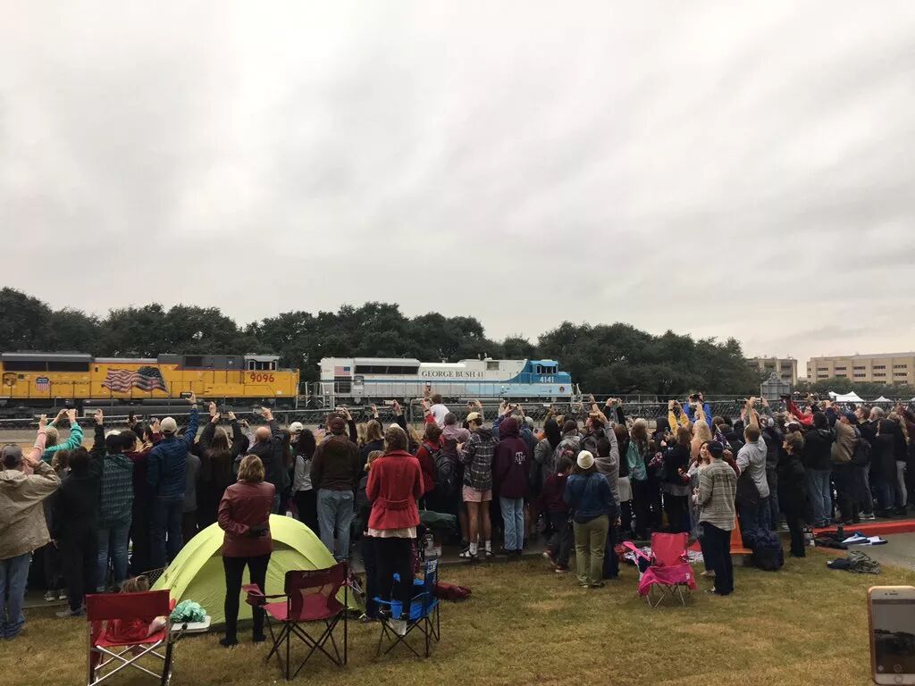 随后,灵柩被装上联合太平洋铁路公司的4141号老布什专列,出发前往Texas A&M大学,也就是老布什最后的长眠之处。