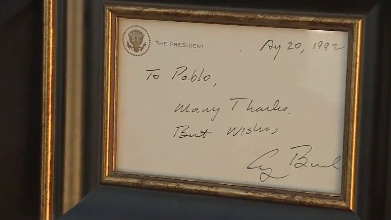 比如一位叫Pablo的老裁缝,带着老布什亲手写给他的感谢信来进行悼念,他为老布什夫妇服务了30年:“总统先生待我如亲人,今天我们失去了一个伟人。”