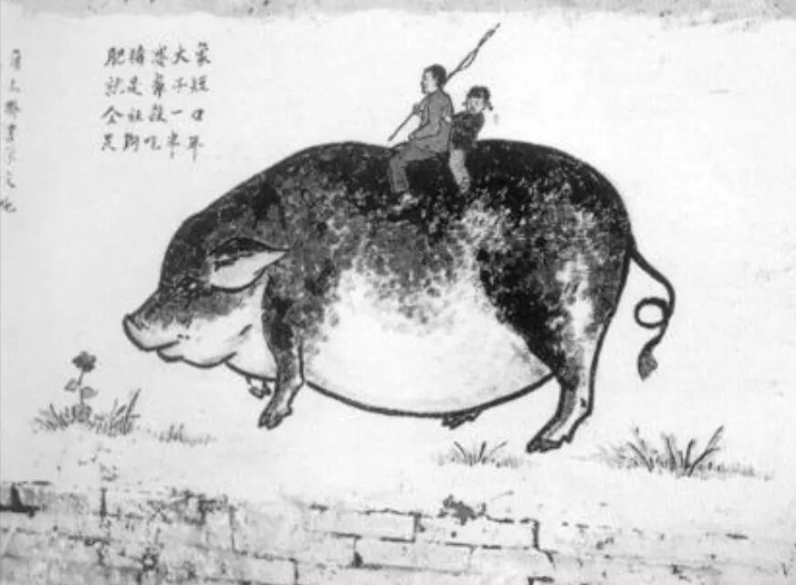 (大跃进时期的农村壁画,千斤肥猪,作者不详)