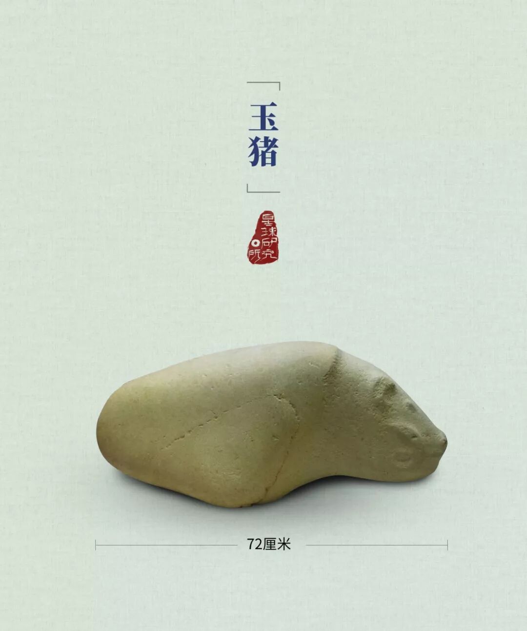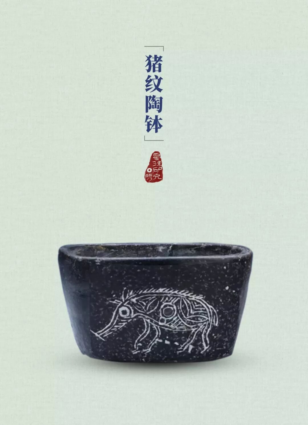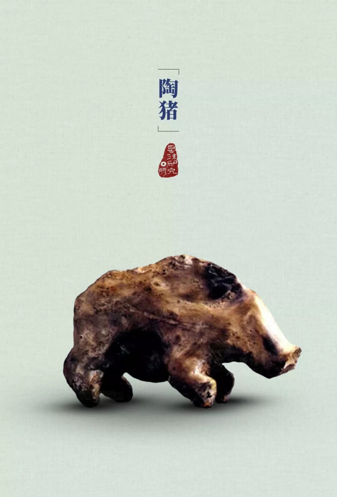 (良渚文化玉璧上的猪形象,后腿系有绳索,反映了初期猪的拘禁与饲养方式;由于成年野猪性格暴躁,难以驯服,驯化也可能是从野猪幼崽开始的)