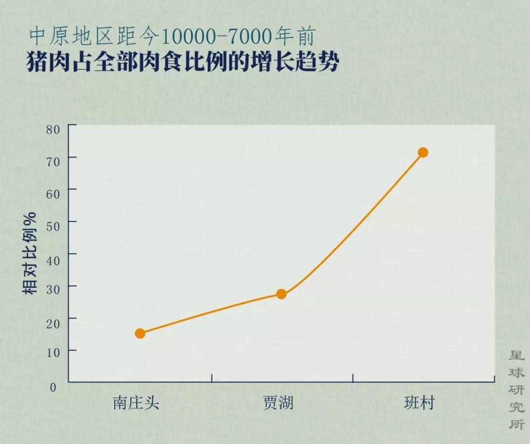 (贾湖位置,制图@郑伯容/星球研究所;中国是世界上最早的家猪独立驯化中心之一,贾湖遗址是目前中国已知最早的家猪出土地点,距今9000年,家猪实际的驯化时间可能更早;除了捕获,猪的驯化还有可能是通过共生进行的)