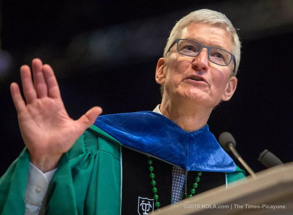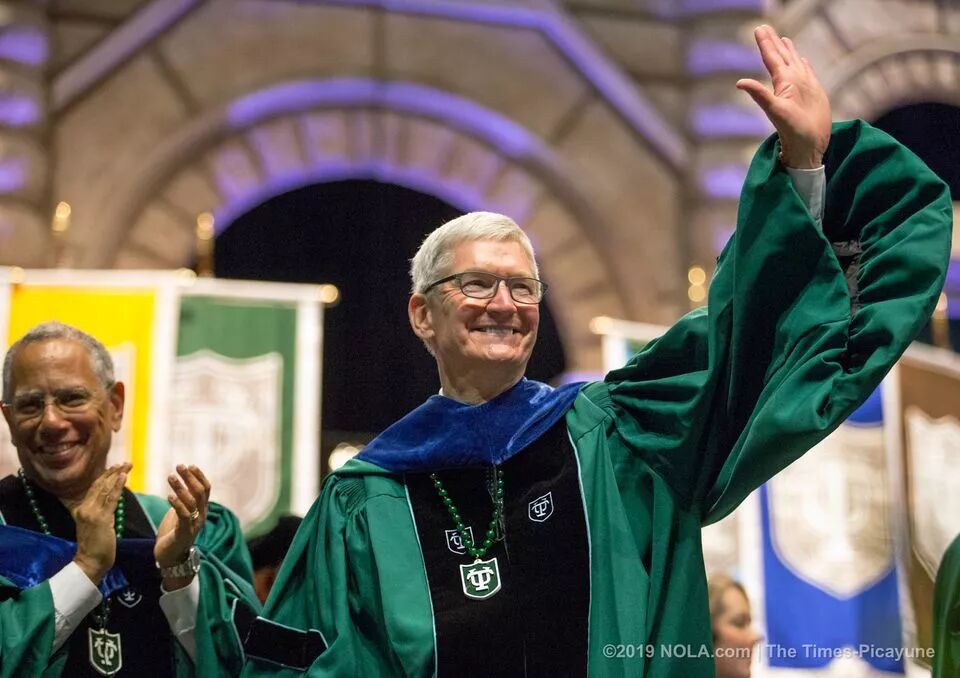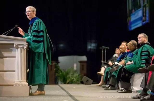 苹果公司CEO蒂姆·库克(Tim Cook)出席美国杜兰大学(Tulane University)2019年毕业典礼并发表演讲。