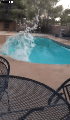 很多人家中后院泳池内的水也是不停的翻涌……