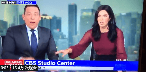 因为突发的地震,新闻主播在坚持播报10秒之后,不得不躲入桌下。