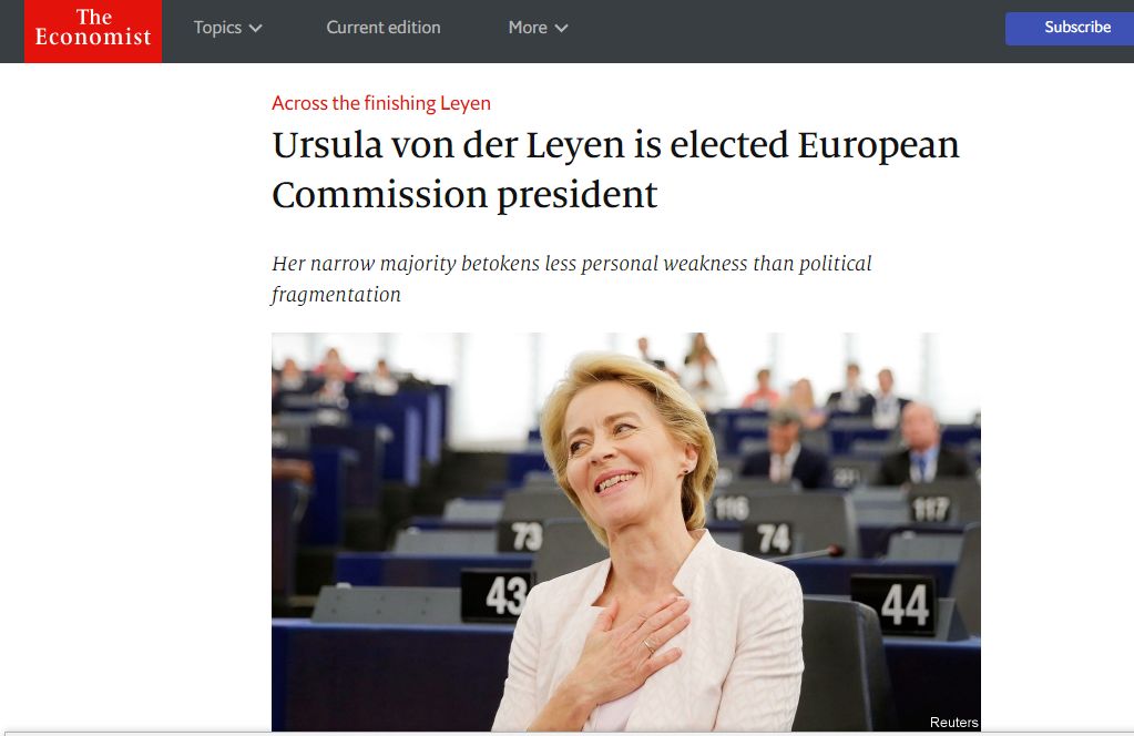 7月16日,在欧洲议会全体会议上,德国又一“铁娘子”——今年61岁的乌尔苏拉·冯德莱恩当选新一届的欧盟委员会主席,成为史上第一位欧盟委员会女主席。
