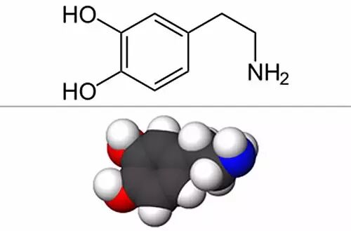 多巴胺(Dopamine):化学名称为4-(2-氨基乙基)-1,2-苯二酚(4-(2-aminoethyl)benzene-1,2-diol)。分子式为:(C6H3(OH)2-CH2-CH2-NH2)。它是由脑内分泌的一种神经传导物质,用来帮助细胞传送脉冲的化学物质。这种脑内分泌主要负责大脑的情欲、感觉,将兴奋及开心的信息传递。
