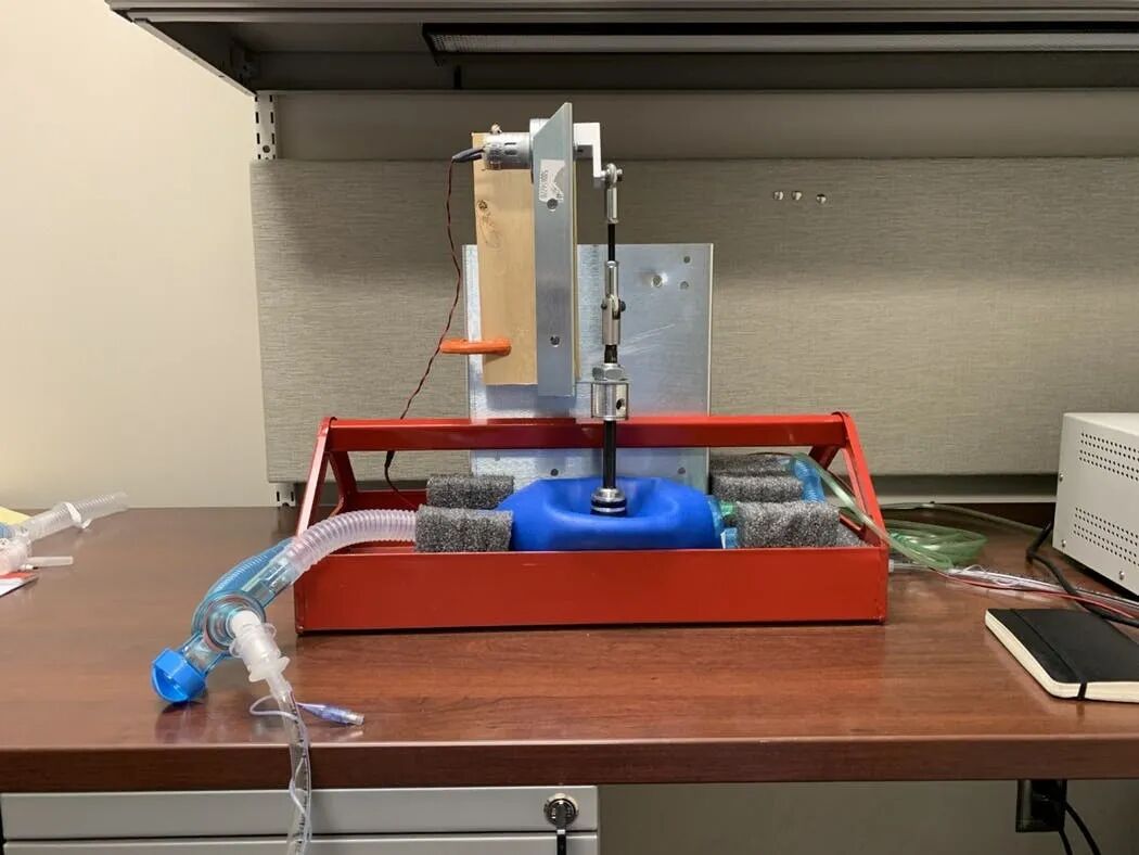 在上周的首次测试中,这台呼吸机模型能让一只猪保持一个小时的呼吸状态,证明可以通过制造低造价呼吸机以缓解设备紧缺情况。组装这台呼吸机模型的零部件总价仅为150美元,其发动机是从另一个设备上拆下来的,并用红色铁皮工具箱托盘作为底座。
