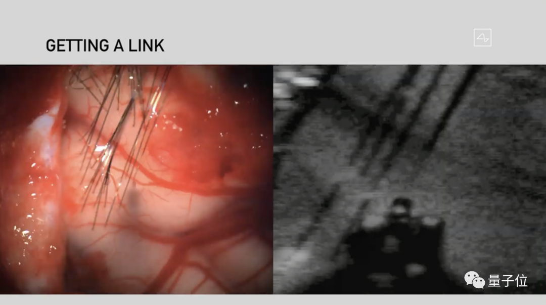 具体来说,通过一台小手术机器人,像微创眼科手术一样安全无痛地在脑袋上穿孔,向大脑内快速植入芯片,实时读取脑电波,无线对外传输,并可以用手机控制。