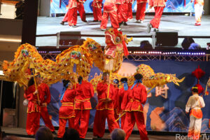 开幕式上,明州鼓乐龙狮队携手CDT团队带来震撼人心的舞龙表演