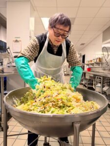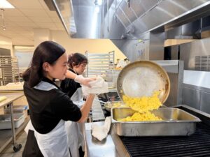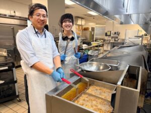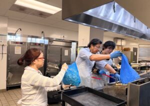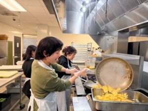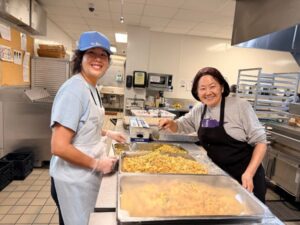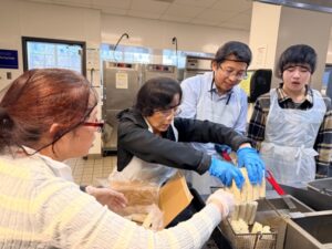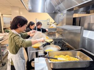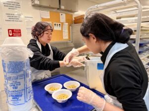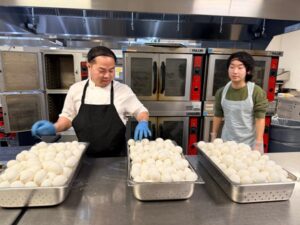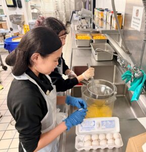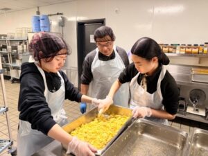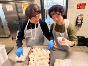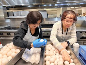 此外,李国清先生和夫人刘霞女士还亲自前往位于明尼阿波利斯的SUMO Grill & Buffet中餐馆,取回七大盘捞面,并于十一点二十分左右送达厨房。所有中餐随后被放入保温箱和保温餐盒中备用,同时,志愿者们还根据厨房主管的安排,细心挑选了大量完好无损的鸡蛋,用于中心为无家可归者准备的晚餐蒸煮。