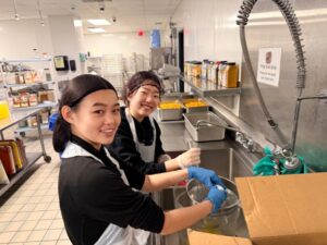 图32: 刘小宇和张盈两位同学在帮忙准备第二天的早点。