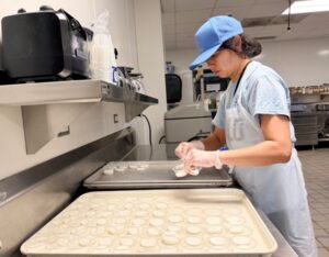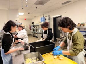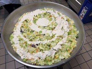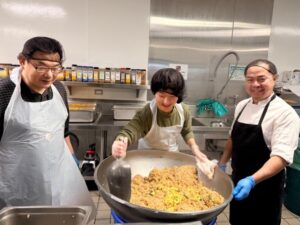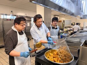 当天,圣保罗市阳光灿烂,气候宜人。清晨八点前,Bo Bear的老板胡忆莲女士就带着所有食材抵达了多瑞丝活动中心的多功能厨房,立刻投入忙碌(她甚至提前一周就考察了厨房设施并制定了详细的烹饪方案)。九点左右,联谊会董事会成员和志愿者们陆续到齐,在胡女士和厨房主管Vanny Ouch先生的指导下,开始分头准备午餐。