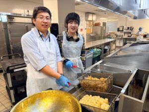 大家洗菜、切菜、搅拌、油炸,分工合作。在不到一个半小时内,充足的食物就准备就绪: