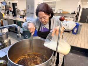 图2: 胡忆莲女士精心调制甜酸鸡调味酱。