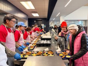 明州中美联谊会(Chinese American Association of Minnesota, CAAM)一如既往地秉承着三十多年来的优良传统,于11月23日(星期日),在明州首府圣保罗市的天主教多瑞丝慈善活动中心(Dorothy Day Place,Catholic Charities),为当地无家可归者送去了充满暖意的 “感恩节前爱心午餐”(Pre-Thanksgiving Free Lunch)。当天,近300位无家可归人士享受了这份温馨可口的中式美食。