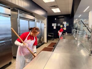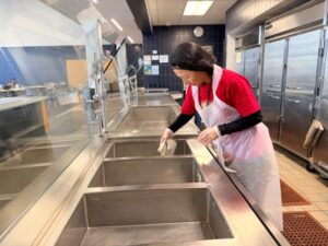 图39: 分餐服务结束后,刘霞女士在认真细致地清洁柜台。