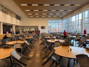 图46: 被同学们整理后的硕大餐厅已准备好接待晚上的进餐者。