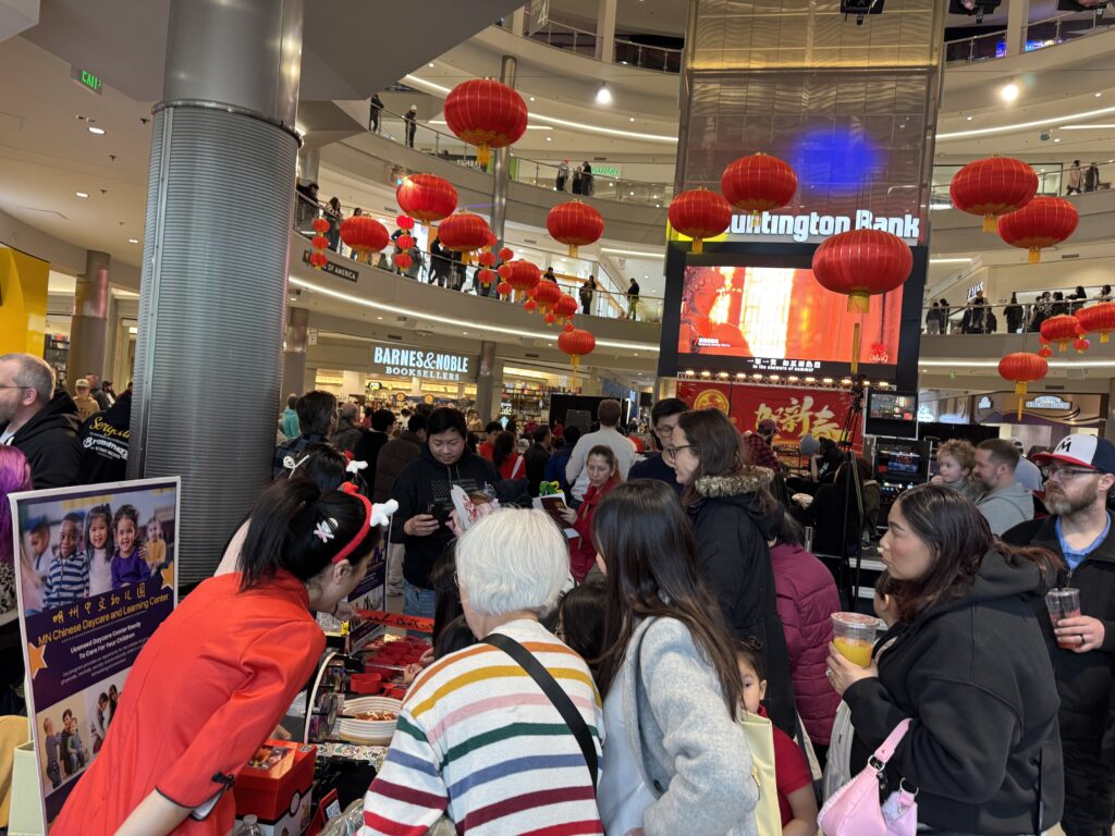 明尼唐卡学区今年继续参加了在美国商城举办的2026大型春节庆祝活动展台。学区的老师们精心策划,开展了马年福字拓印、筷子挑战、春节知识问答等富有趣味性和文化特色的互动项目。丰富多样的体验内容吸引了许多家庭积极参与。不仅为不同年龄段的访客提供了了解春节文化、体验传统年俗的机会,促进了学校与社区之间的交流,也进一步加深了明州本地居民们对中国文化的认识与理解。