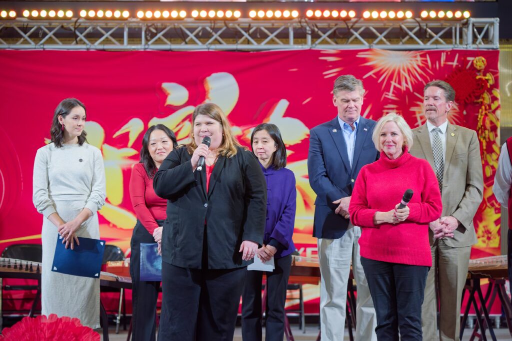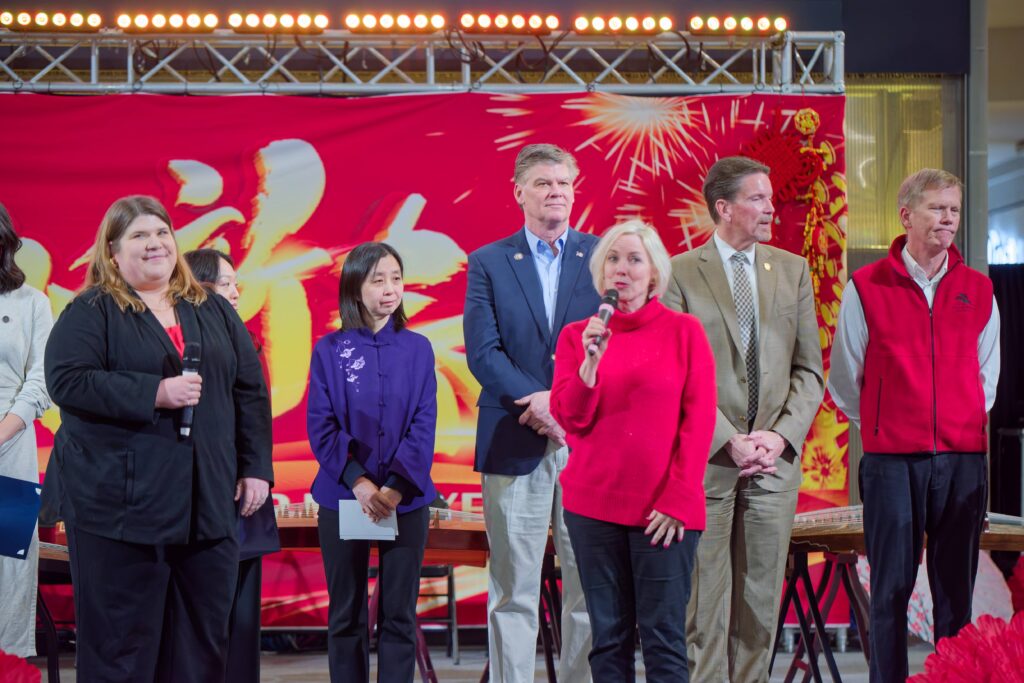 开幕式上,多位政要与社区代表先后致辞,向现场观众传递马年吉祥、万事顺遂的美好祝愿。致辞嘉宾包括:州众议员Mark W. Koran、Eric Pratt,中国驻芝加哥总领馆副总领事张宜琪,联邦参议员Amy Klobuchar办公室代表Stephanie Yang,联邦众议员Kelly Morrison办公室代表Michelle Manivel,布鲁明顿市长Tim Busse,Eagle Point中文学校校长Shawn Bromeland,Global Minnesota前主席Kaimay Terry,明州亚洲事务理事会副理事长Poh Lin Khoo,美国商城旅游部主任Natasha Freimark,美国商城活动事务部主任Meri Ryan,明州华联会主席颜炳文等。嘉宾们共同祝愿活动圆满成功,并向各族裔民众致以新春问候。