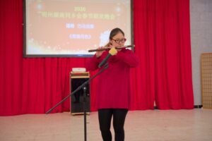 值得致敬的是多位表演者克服困难赶来助演。汪芳与女儿李馨怡在主持完社区春晚后驱车赶到;英华学校音乐教师、扬琴硕士谭希女士在两个孩子生病的情况下抽空前来演出;邓伍迪理工学院教授黄宁生博士在参加另一场春晚后赶场而至,为大家带来压轴节目。乡亲们对他们的热情与付出深表感谢。